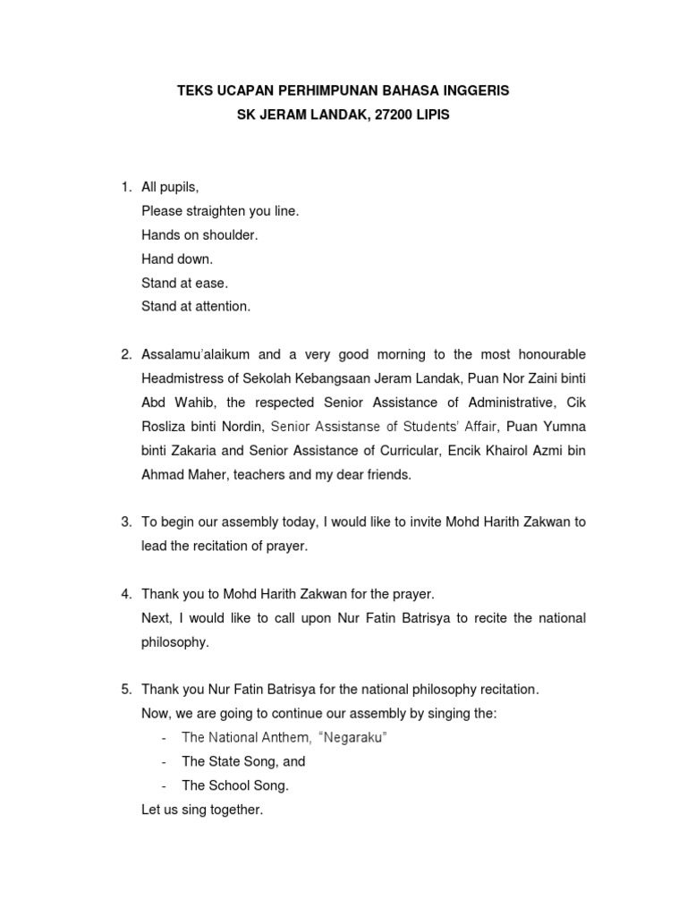Teks Ucapan Perhimpunan Dalam Bahasa Inggeris Pdf